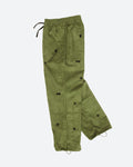 100% Cotton Corduroy / Loose Fit Pant / All Over Pattern Embroidery / Elastic Waistband with Drawcord / Hidden Cuff Closure