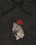 80% Cotton 20% Poly Fleece / Pullover Classic Style Hood / 380gsm Heavy Weight Fleece / Small Chest Embroidery Art / Back Embroidery Art / Elastic Cuffs and Hem / Drawcord Hood / Washed Fabric