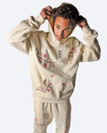 80% Cotton 20% Poly Fleece / Pullover Classic Style Hood / 380gsm Heavy Weight Fleece / Chest and Back Embroidery Art / All Over Print Pattern Art / Elastic Cuffs and Hem / Drawcord Hood