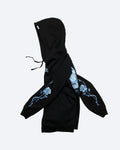 80% Cotton 20% Poly Fleece / Pullover Classic Style Hood / 380gsm Heavy Weight Fleece / Chest and Band and Sleeve Embroidery Art / Elastic Cuffs and Hem / Drawcord Hood