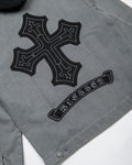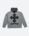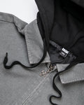 100% Cotton Canvas Jacket / Zip Front Hooded Style / Vintage Wash / Back Embroidery Art / Front Embroidery Art / Full Body Lining / Fleece Hood W/ Embroidery Art / YKK Zipper w/ Custom Pull / Lower Front and Chest Pockets